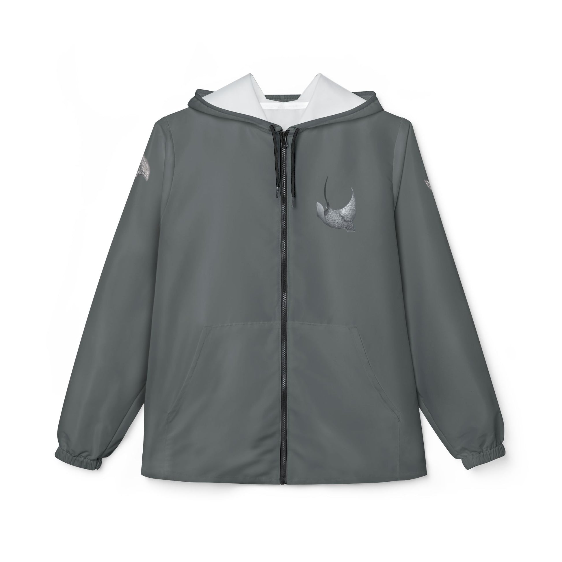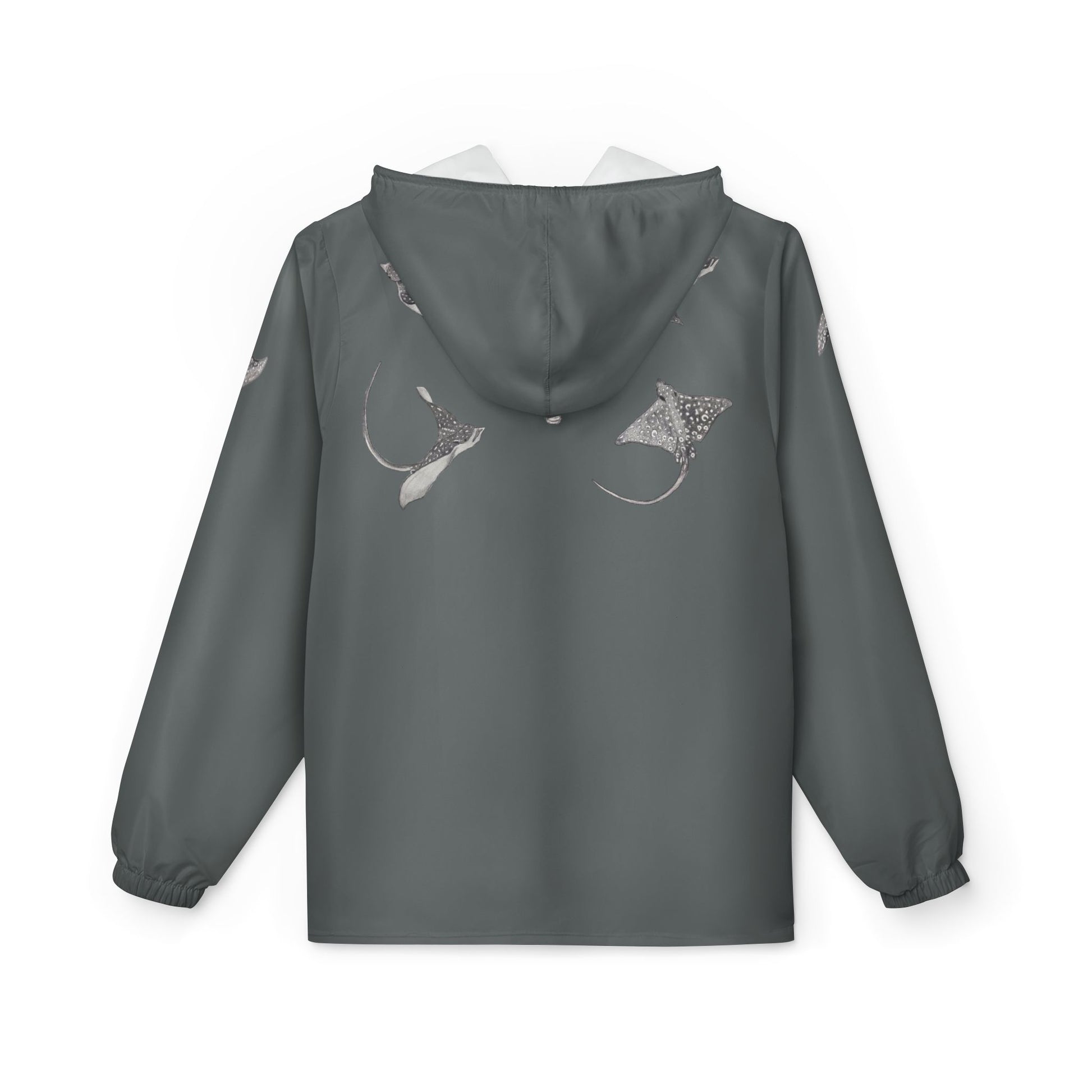Stay stylish and comfortable with this lightweight windbreaker jacket, perfect for layering in unpredictable weather. This jacket captures a vibrant, playful vibe, making it ideal for those who love to express their individuality and their love for marine life. Whether you're heading to a music festival, a casual day out, or taking a scenic hike, this versatile piece fits seamlessly into your lifestyle. It's an excellent choice for outdoor enthusiasts, casual adventurers, and anyone who appreciates a splash of color in their wardrobe. This windbreaker features my drawing of the majestic Spotted Eagle Ray.