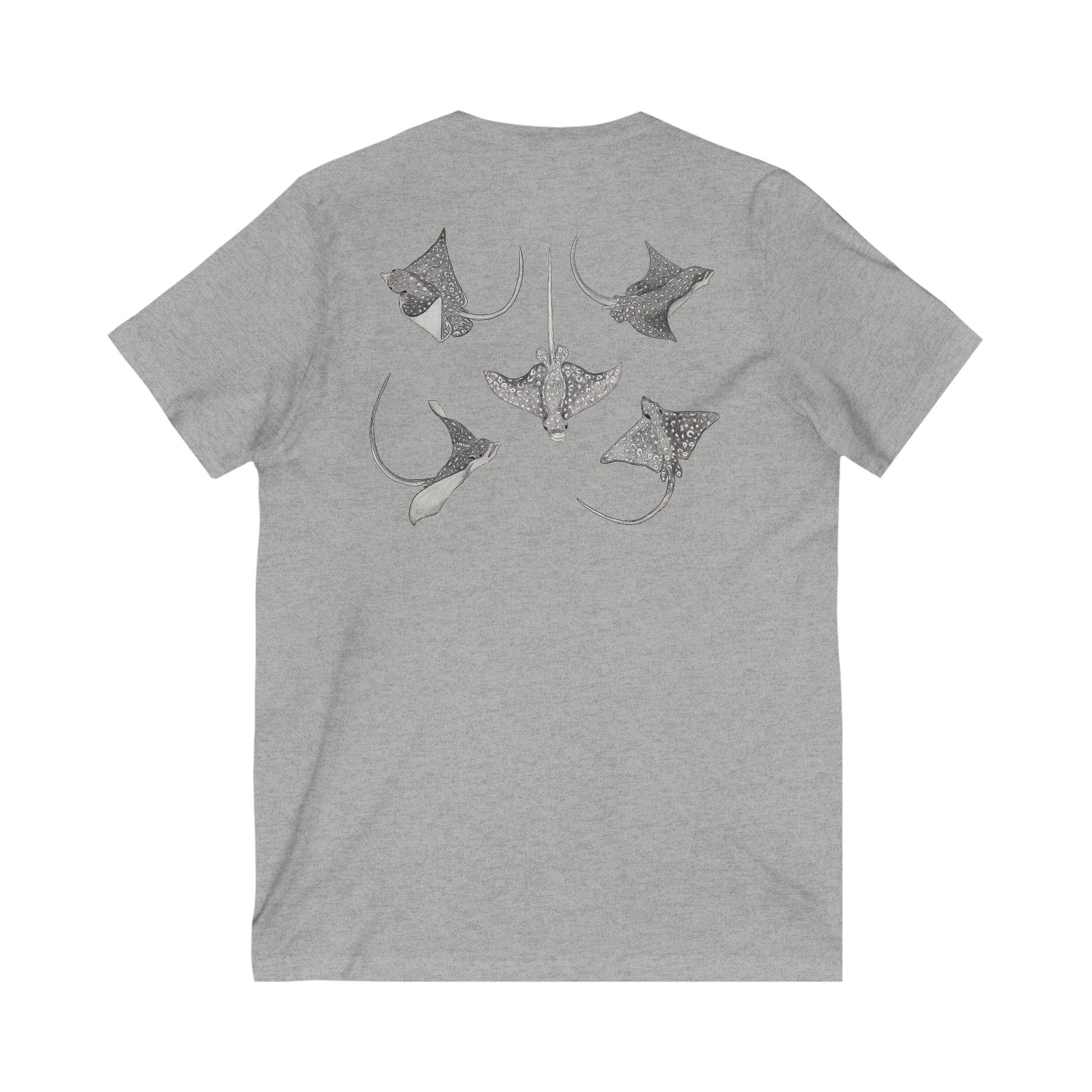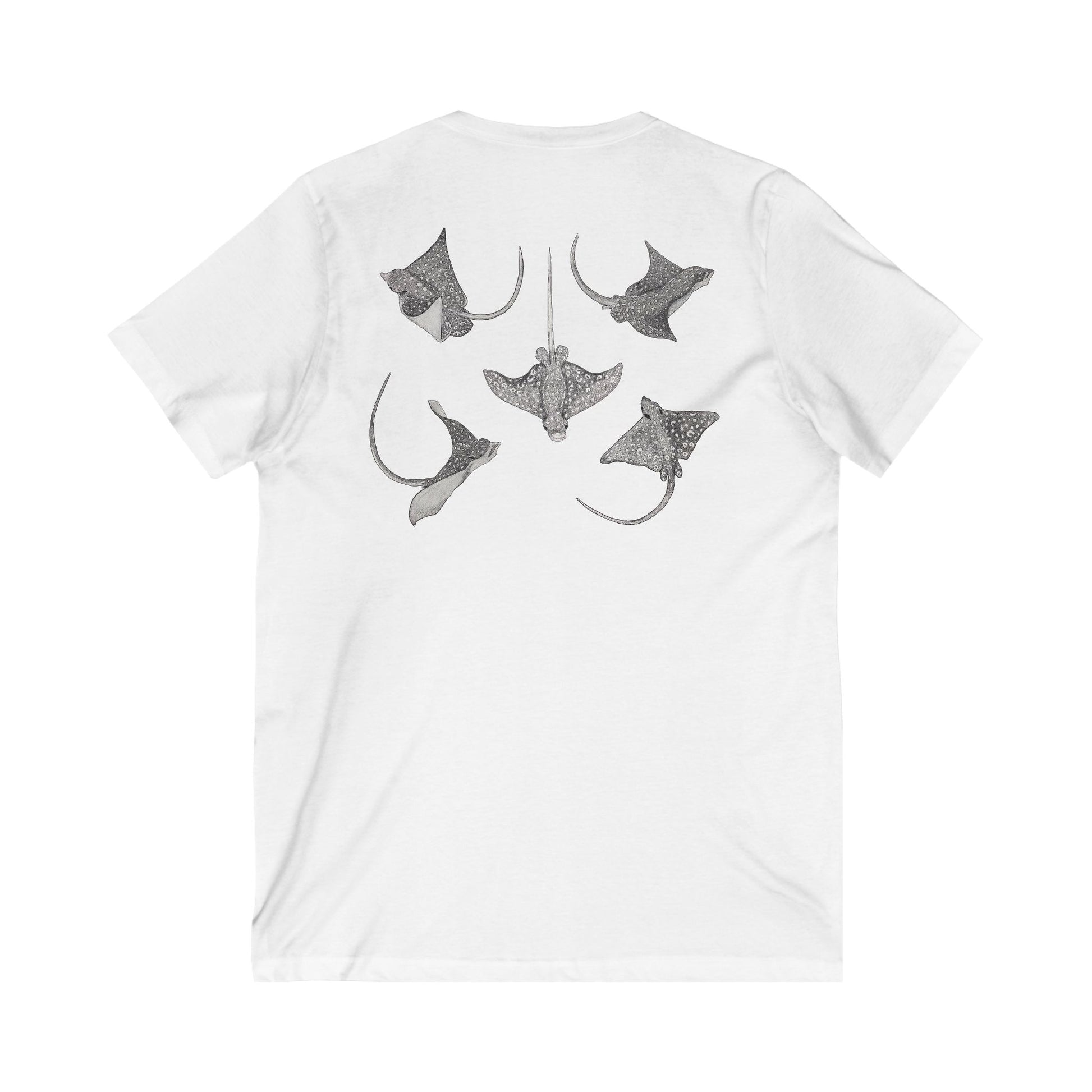 Looking good on everyone, this soft jersey tee is comfortable enough to wear all day long. High quality print featuring hand drawn illustrations, creating a pattern of the majestic Spotted Eagle Ray!
