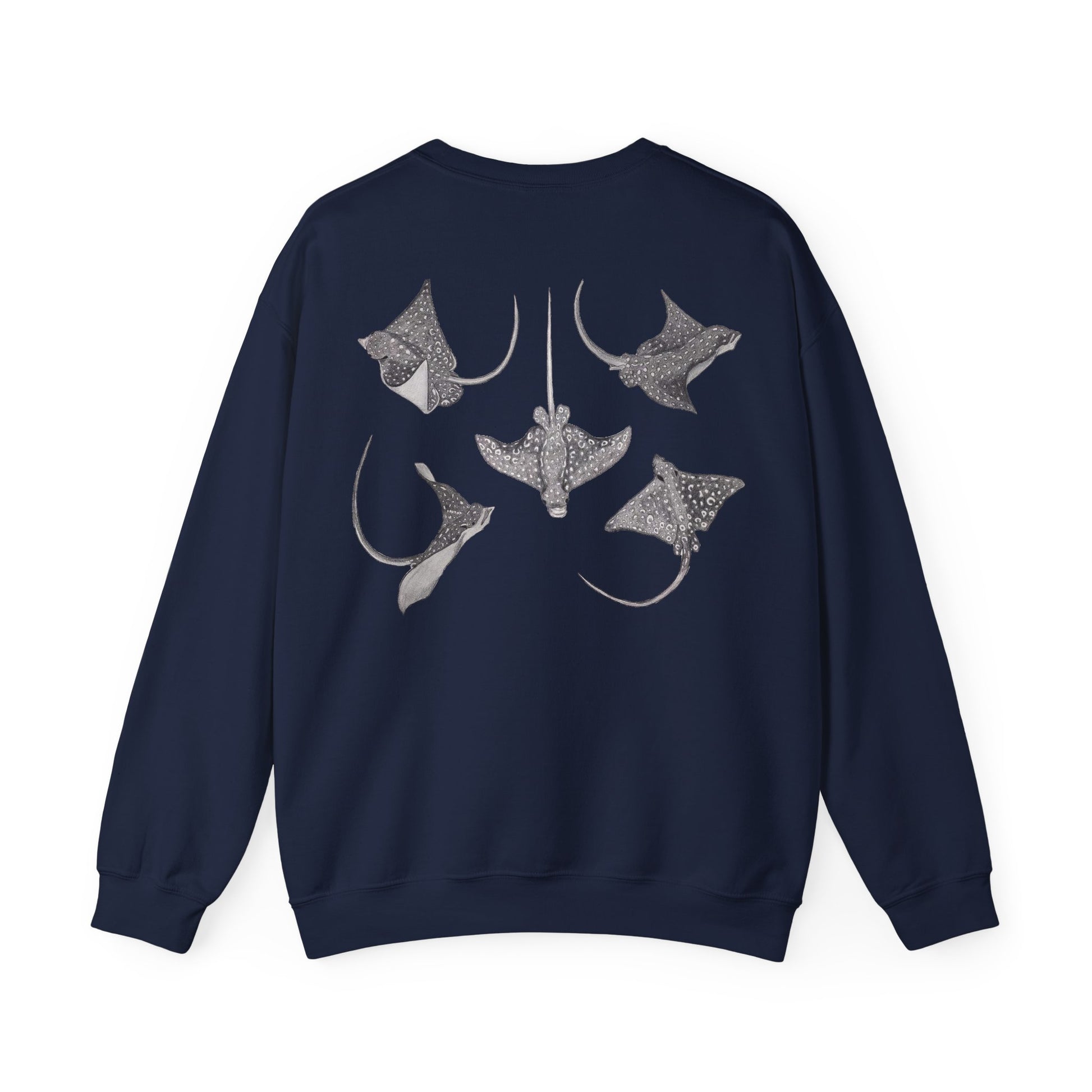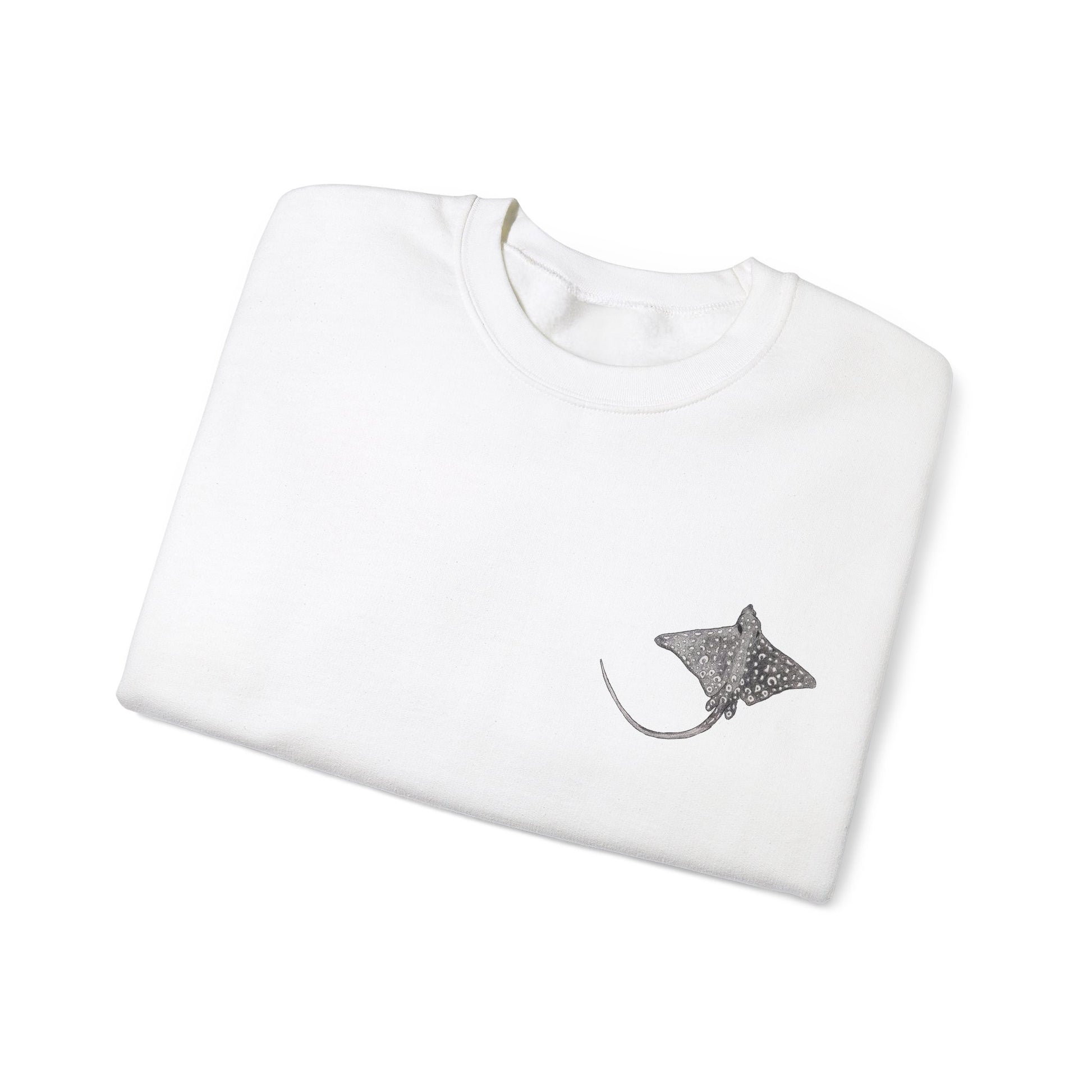 Available in multiple colors, this sweatshirt is sure to keep you warm and stylish all day long. Featuring my illustrations of the angles of the sea the Spotted Eagle Ray!