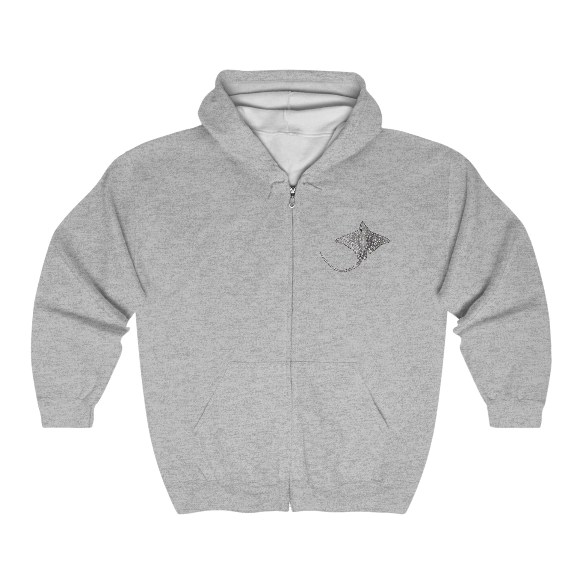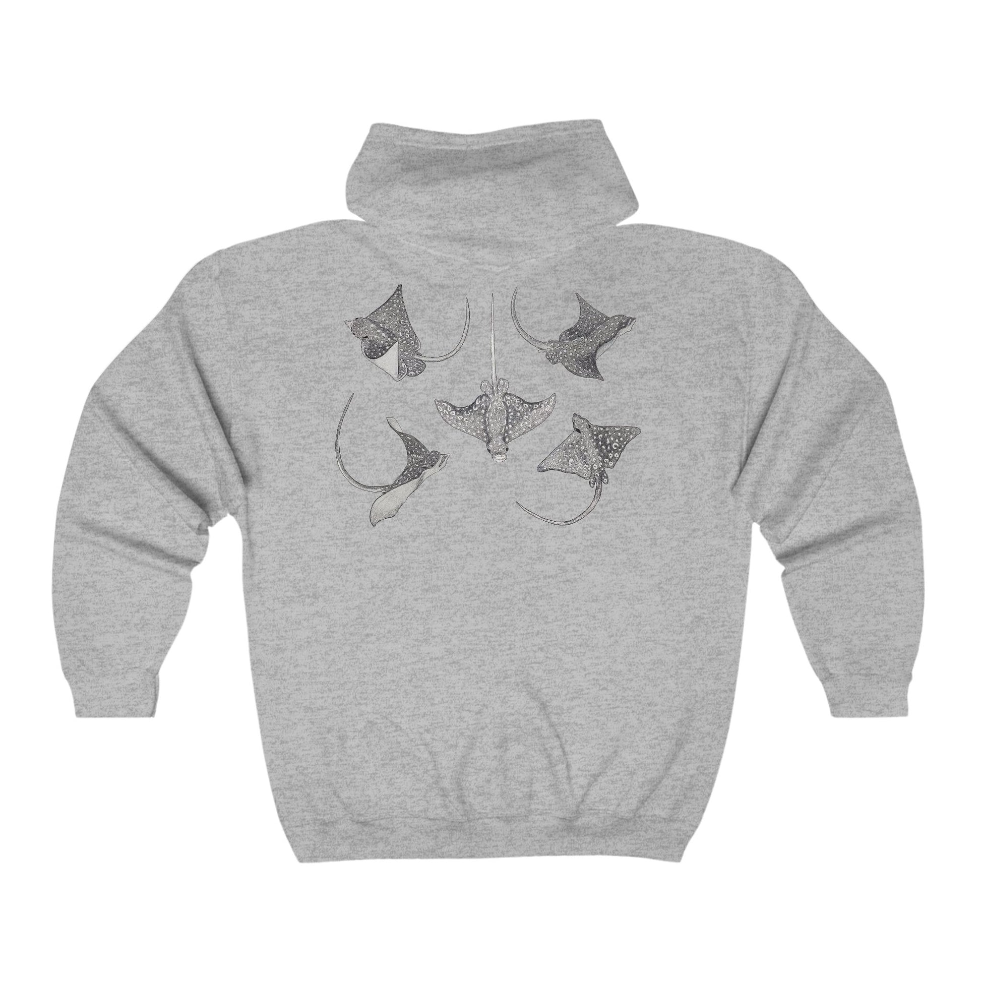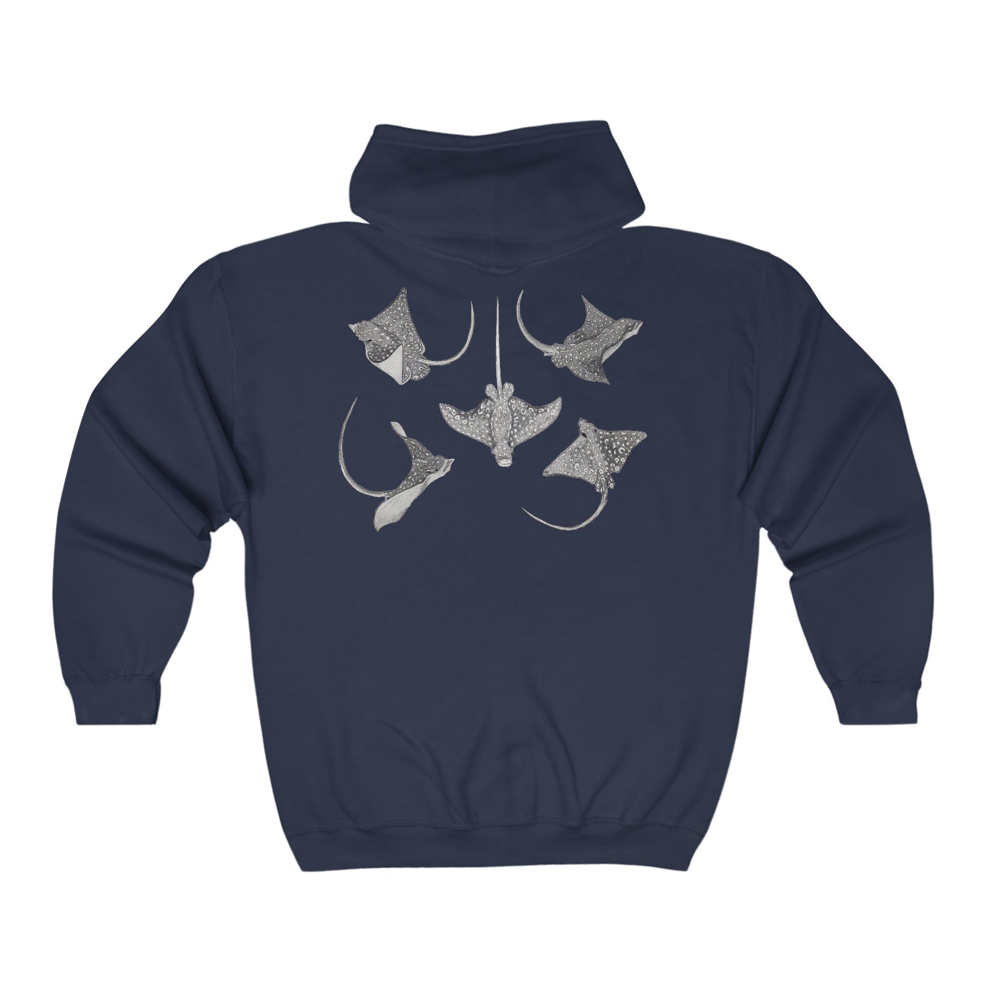 This unisex full-zip hoodie, featuring my illustrations of the Spotted Eagle Ray, is made with a medium-heavy fabric blend (80% combed, ring-spun cotton, 20% polyester) that is bound to be cozy through colder months.