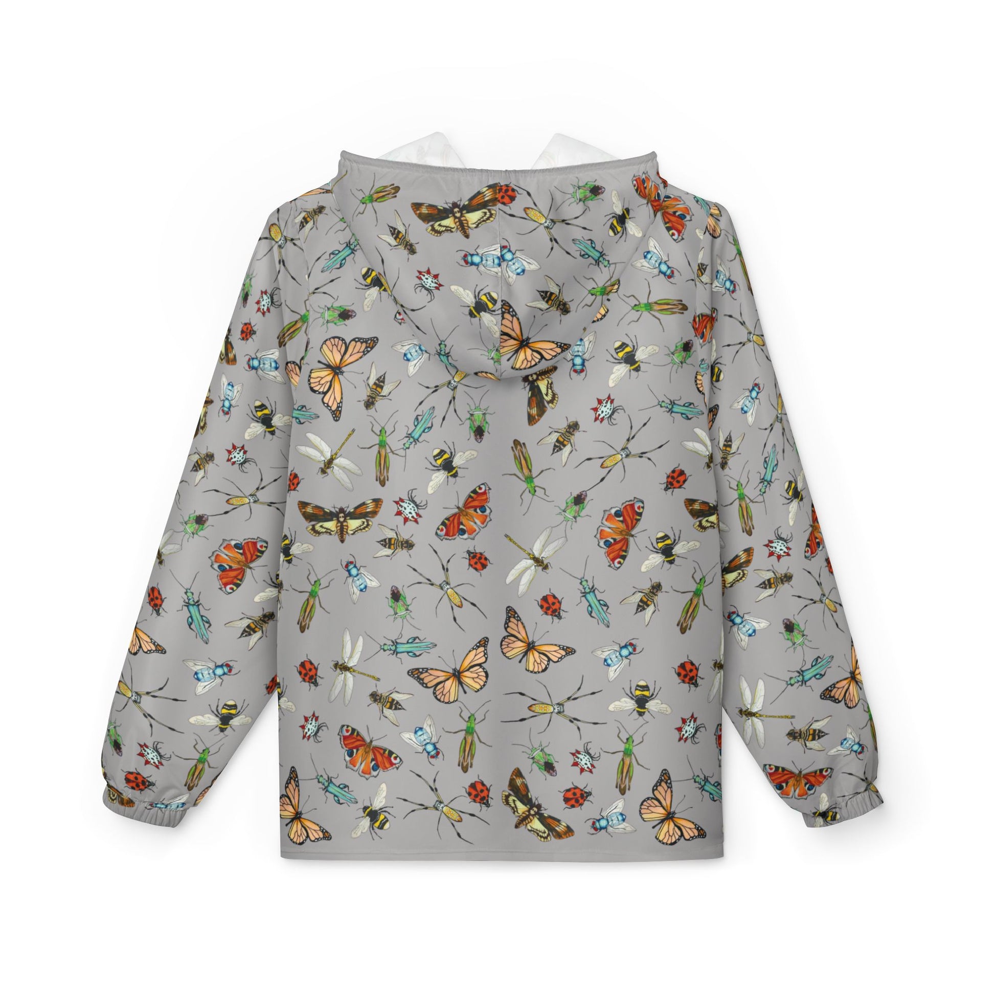 Stay stylish and comfortable with this lightweight windbreaker jacket, perfect for layering in unpredictable weather. This jacket captures a vibrant, playful vibe, making it ideal for those who love to express their individuality and their love for the little creatures that create the Garden Life ecosystem. Whether you're heading to a music festival, a casual day out, or taking a scenic hike, this versatile piece fits seamlessly into your lifestyle. It's an excellent choice for outdoor enthusiasts, casual adventurers, and anyone who appreciates a splash of color in their wardrobe. This windbreaker features my drawing of the insects I grew up watching in my home garden.