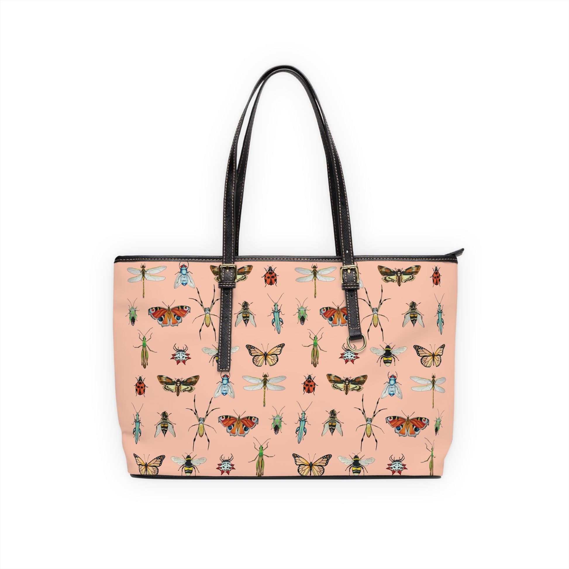 .: Gold-colored zipper and buckles