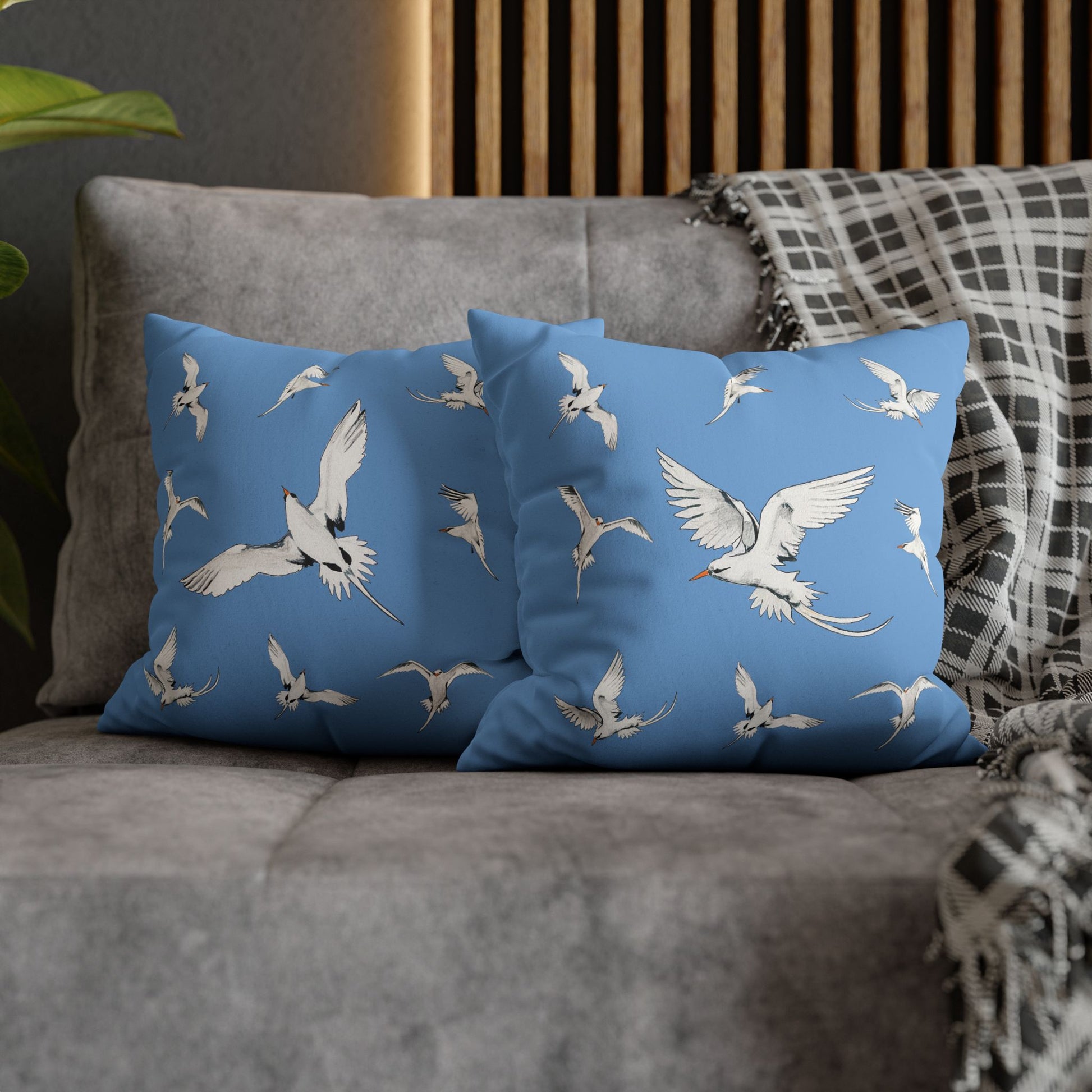 Create a great atmosphere in every room with my hand drawn illustrations of the Longtails (White-tailed Tropicbird)! These highly practical beautiful indoor pillow cases in various sizes serve as statement pieces, creating a personalized environment. Buy with our sherpa blankets to match!