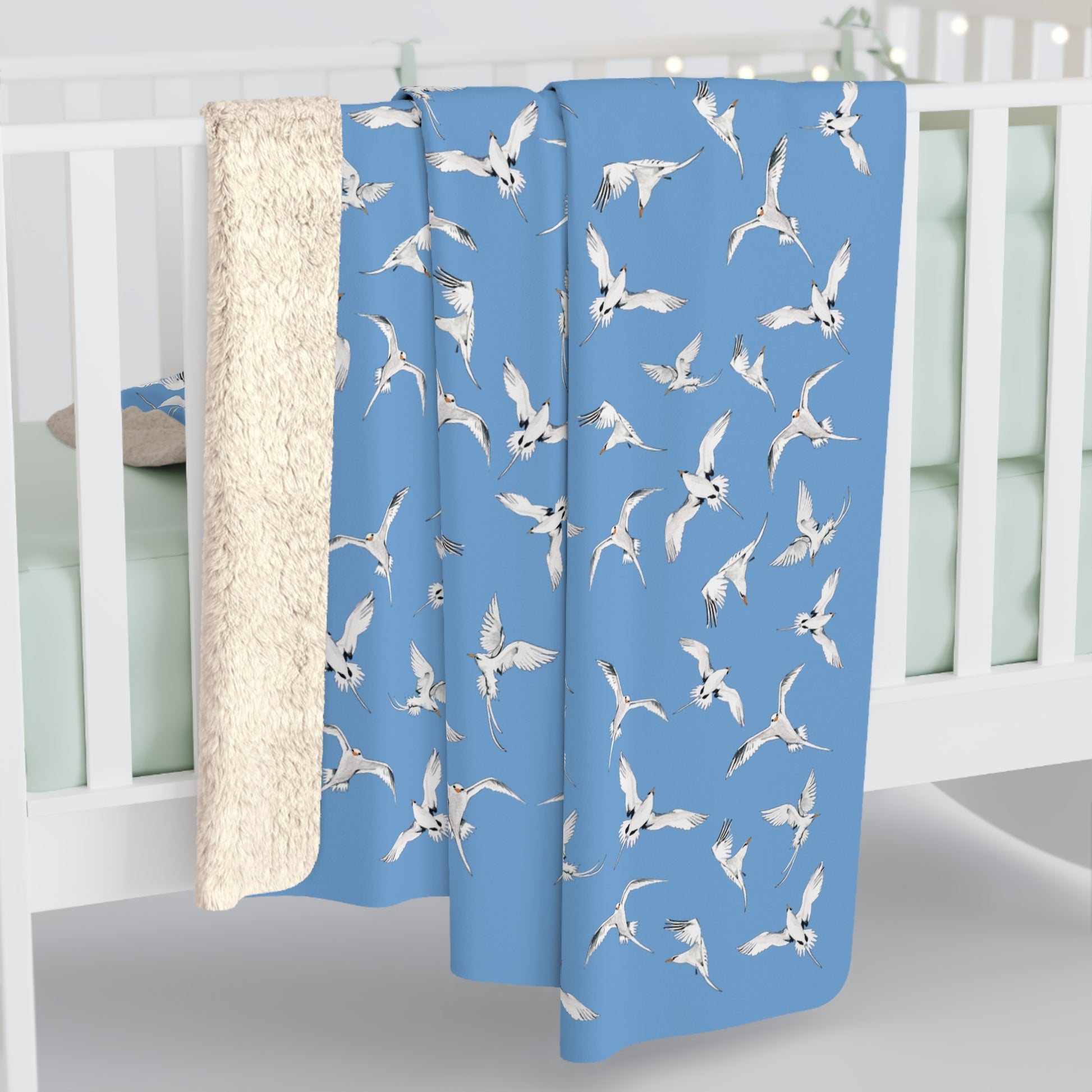 This blanket features the entire hand drawn illustrations of the migrating Longtails (White-tailed Tropicbird)!
