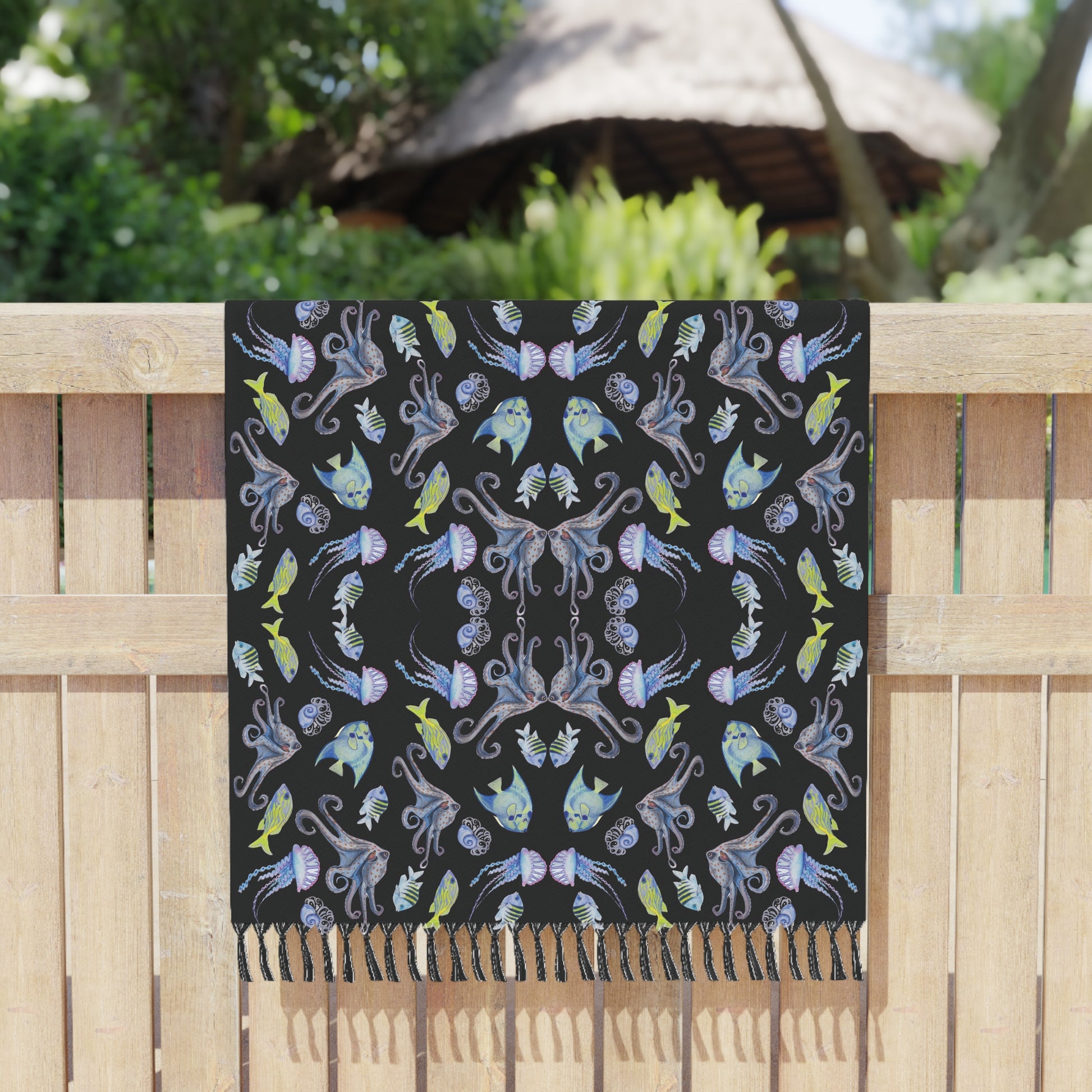 Catch the eye of everyone on the beach, the pool or the park with this unique beach cloth featuring my hand drawn illustrations which create a unique pattern of the creatures of the wild Sargasso Sea!