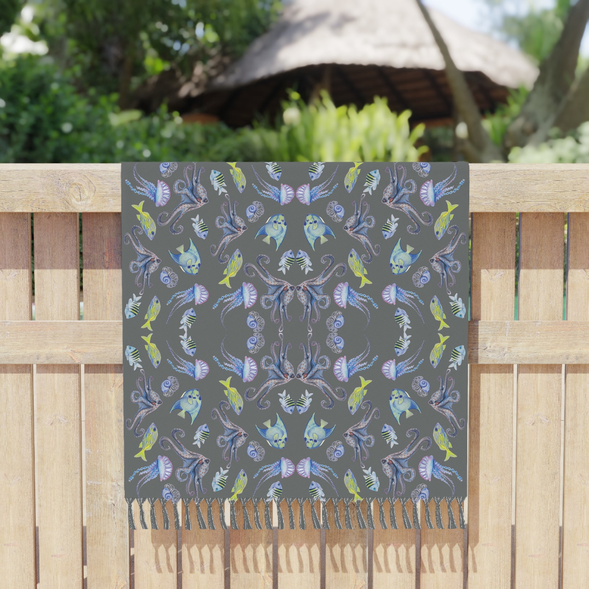 Catch the eye of everyone on the beach, the pool or the park with this unique beach cloth featuring my hand drawn illustrations which create a unique pattern of the creatures of the wild Sargasso Sea!