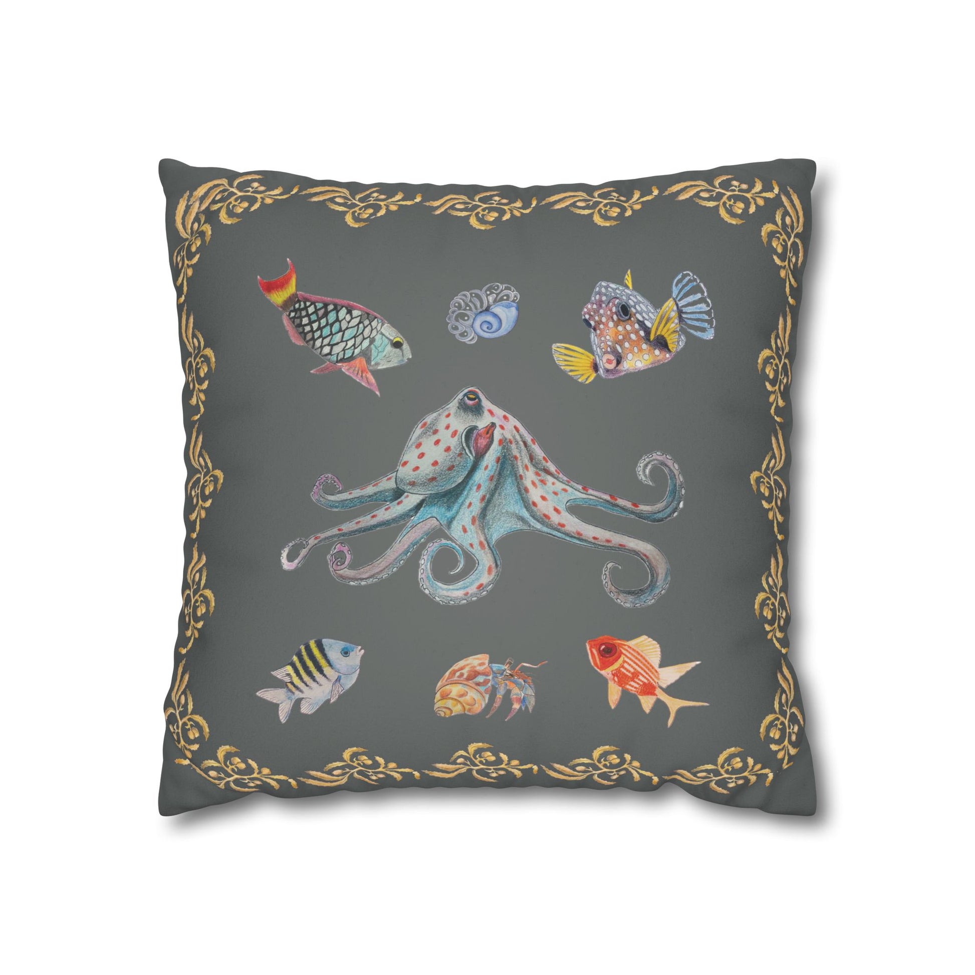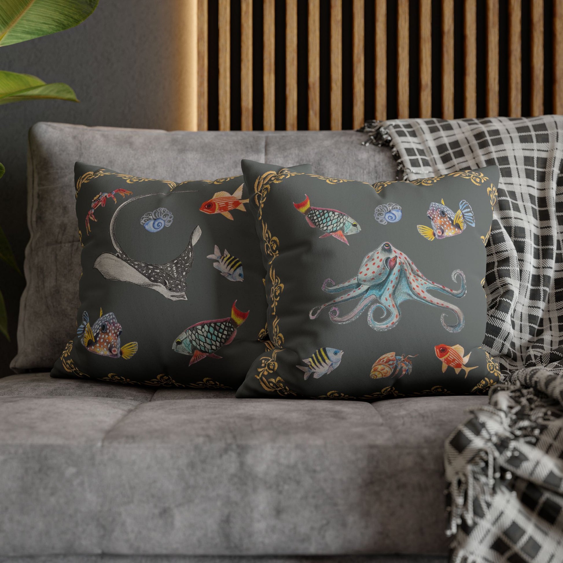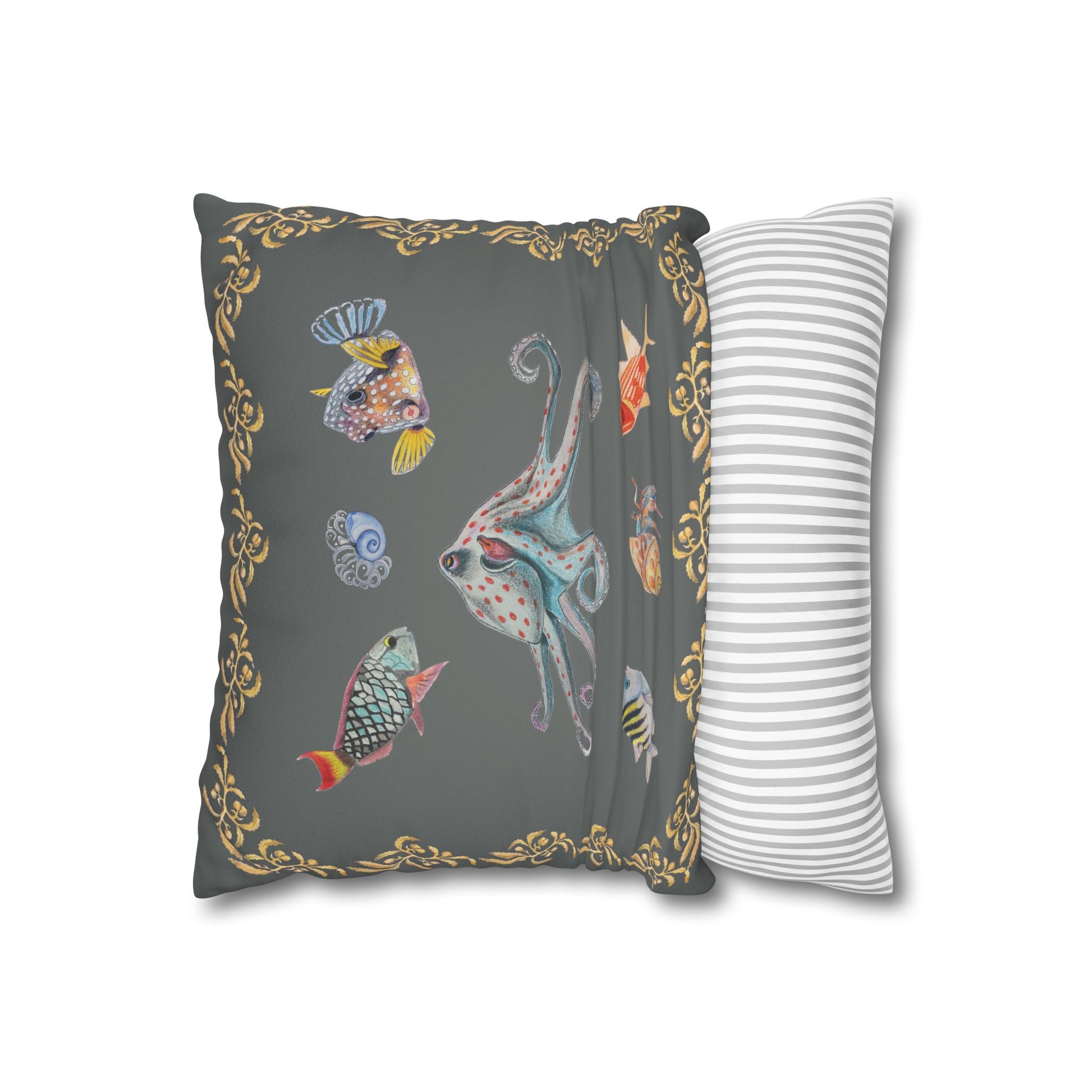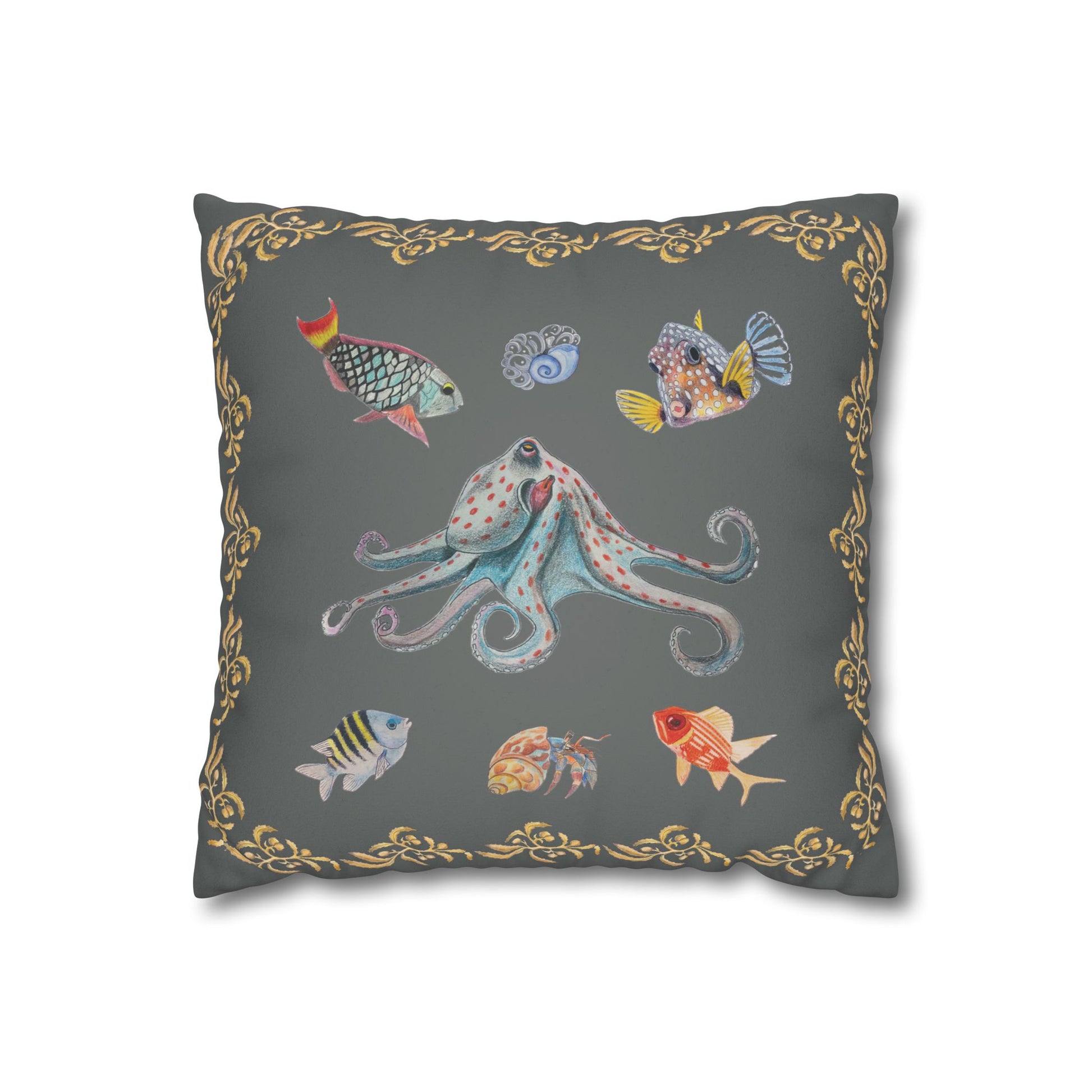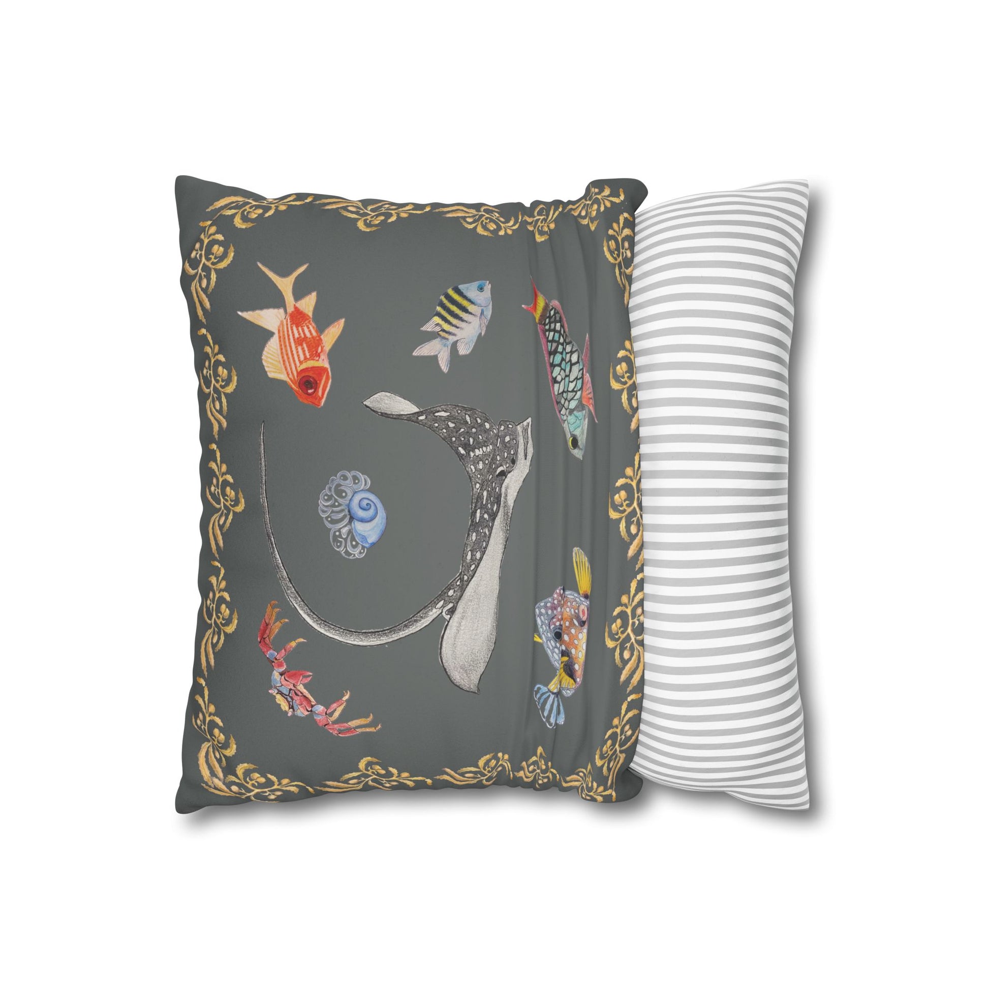 Sargasso Sea - Faux Suede Square Pillow Case - Dark Grey