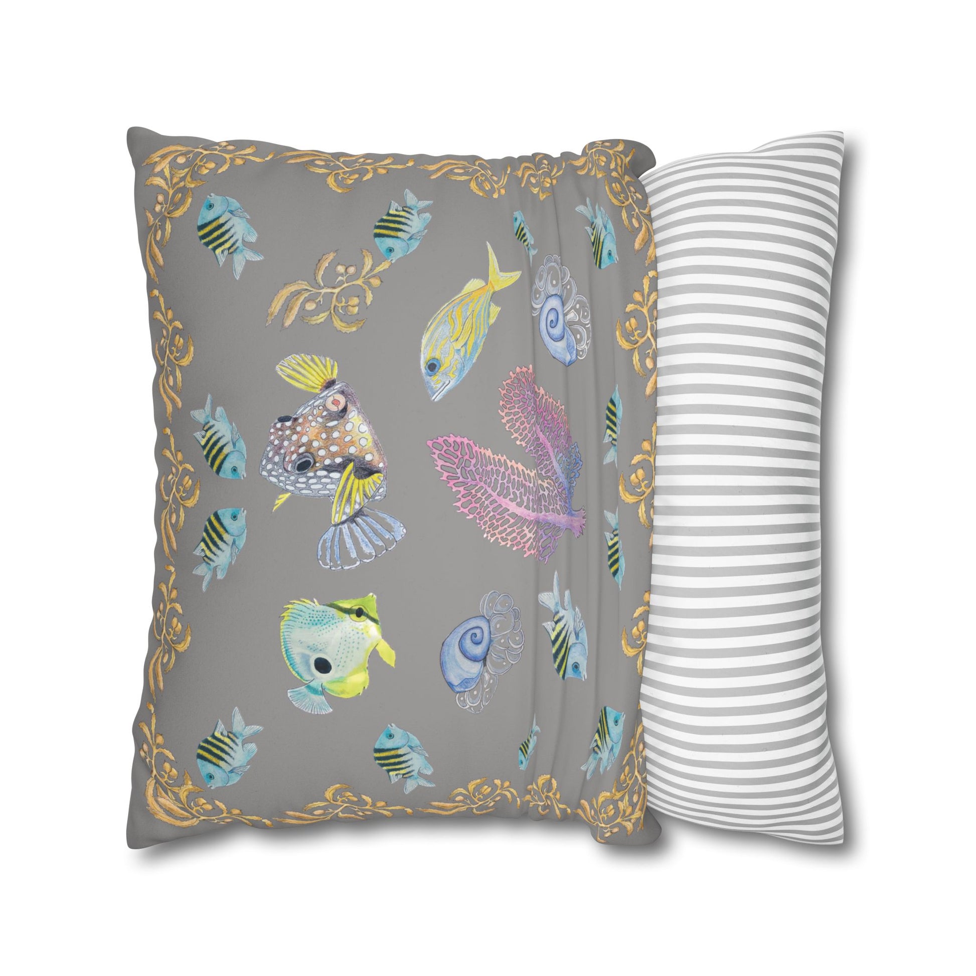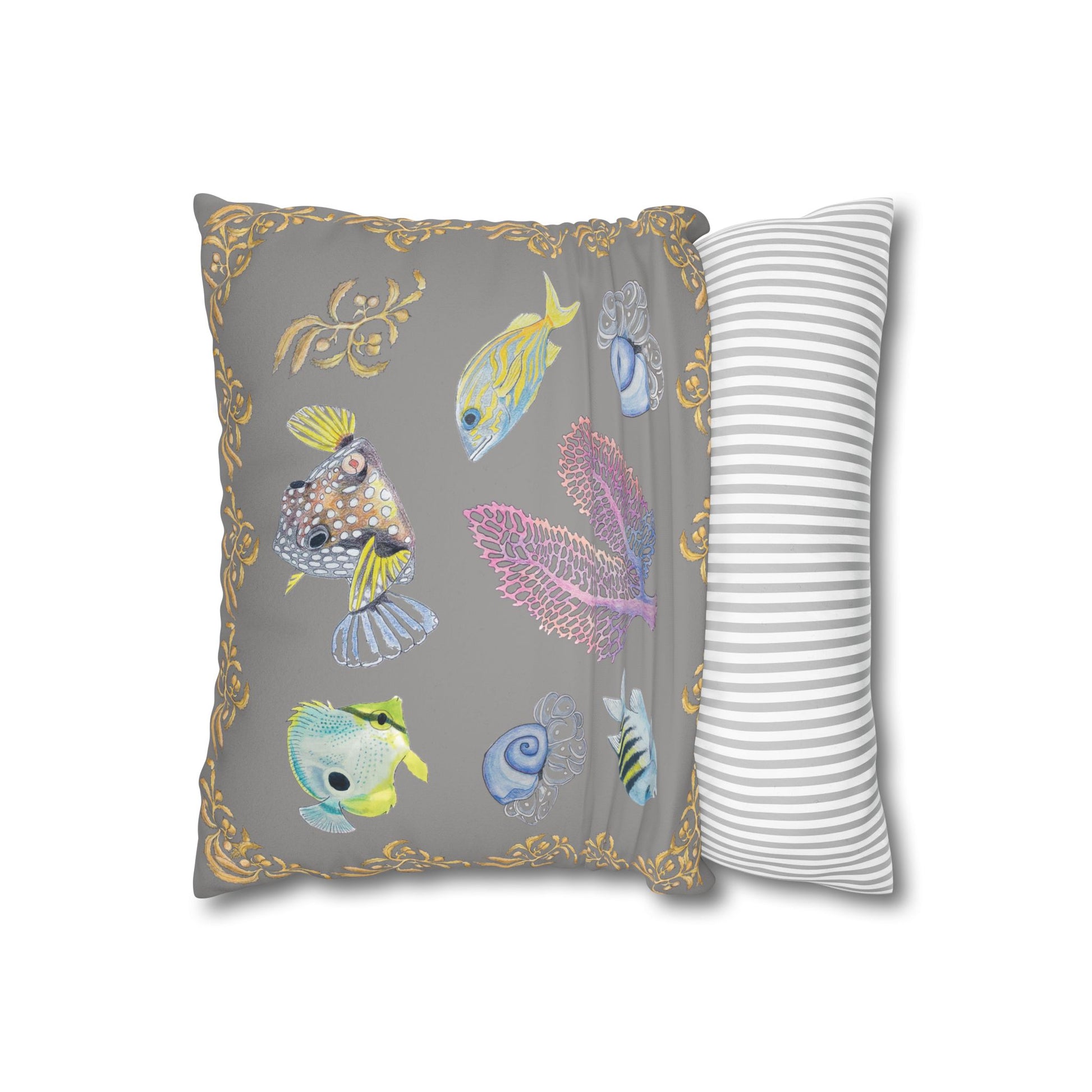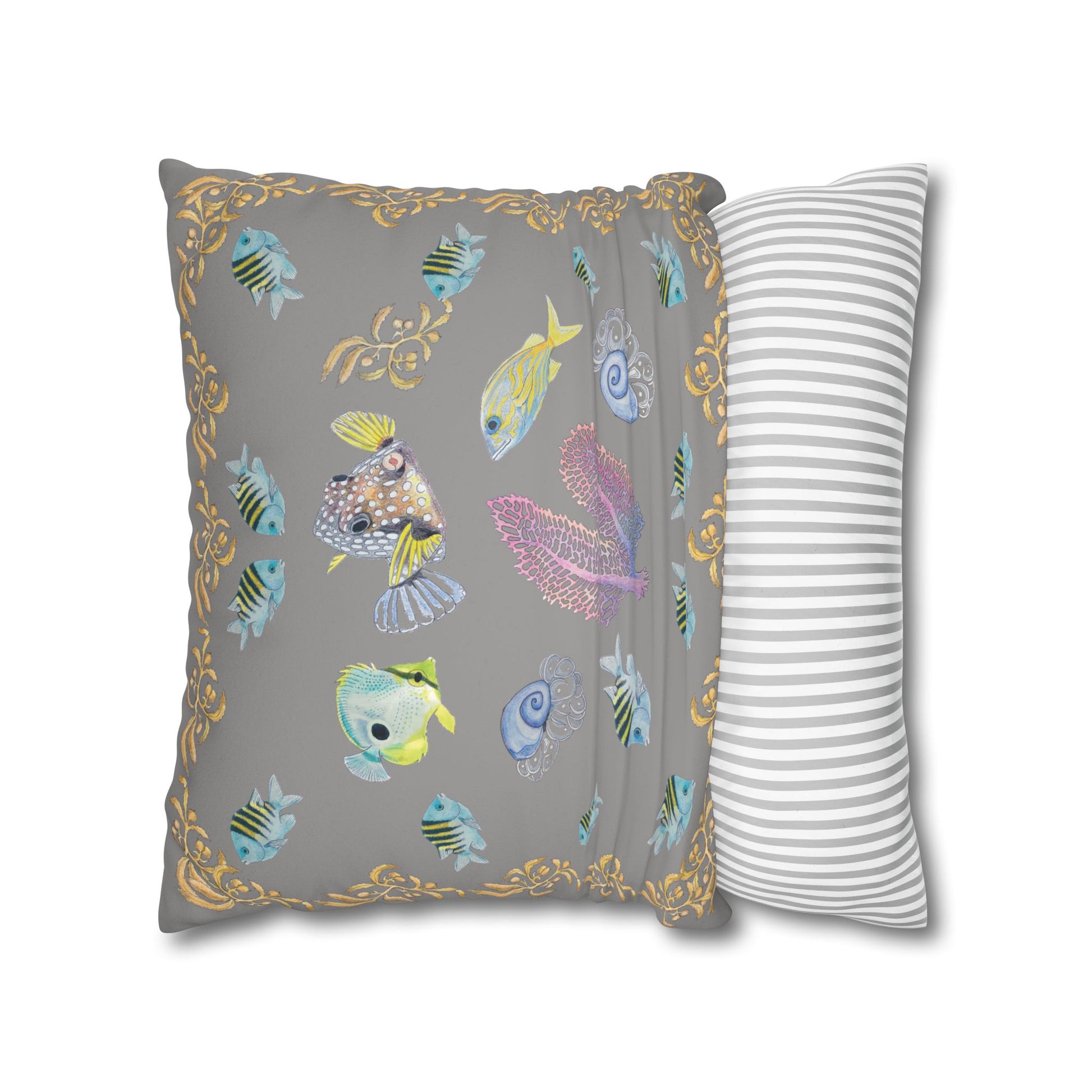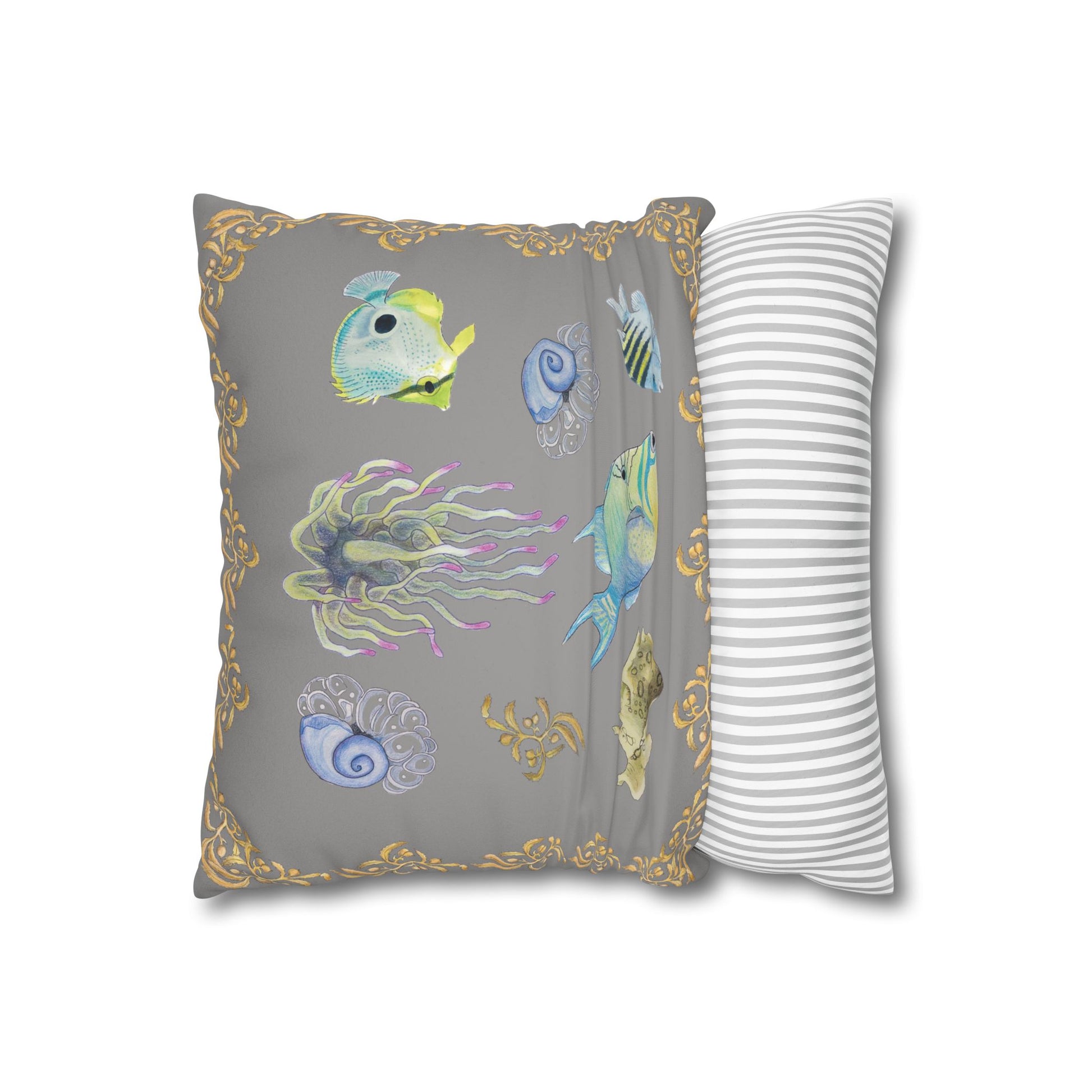 Sargasso Sea - Faux Suede Square Pillow Case - Grey