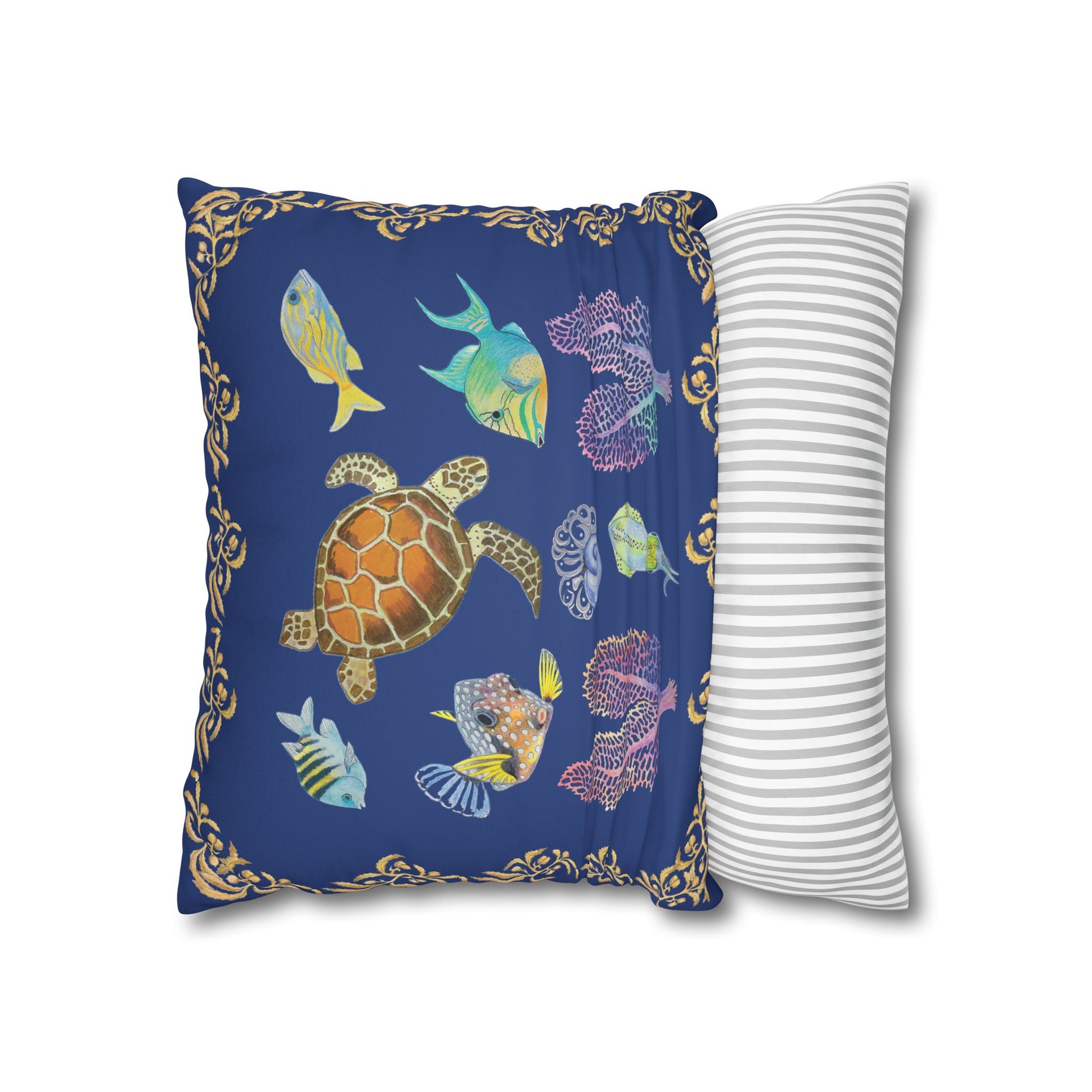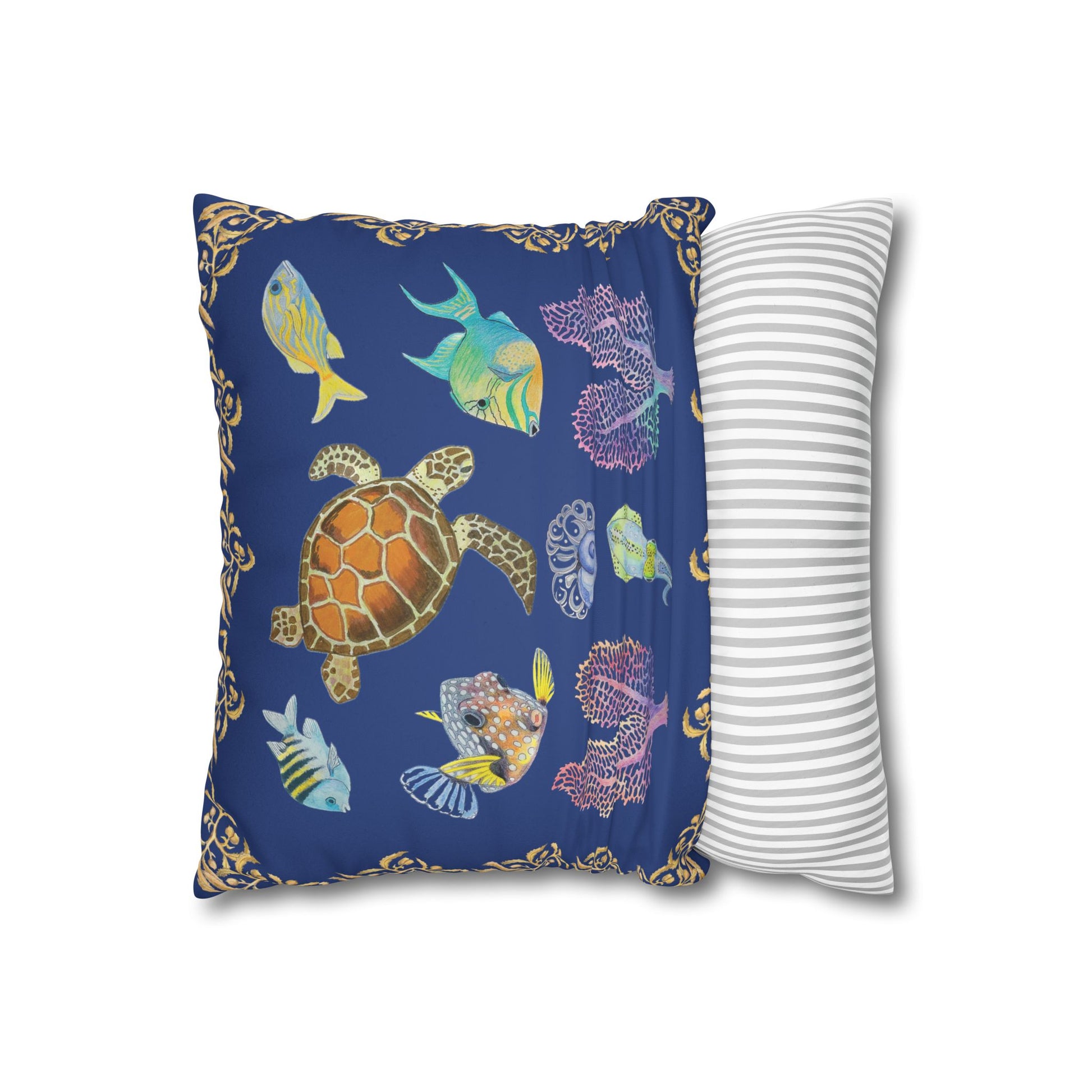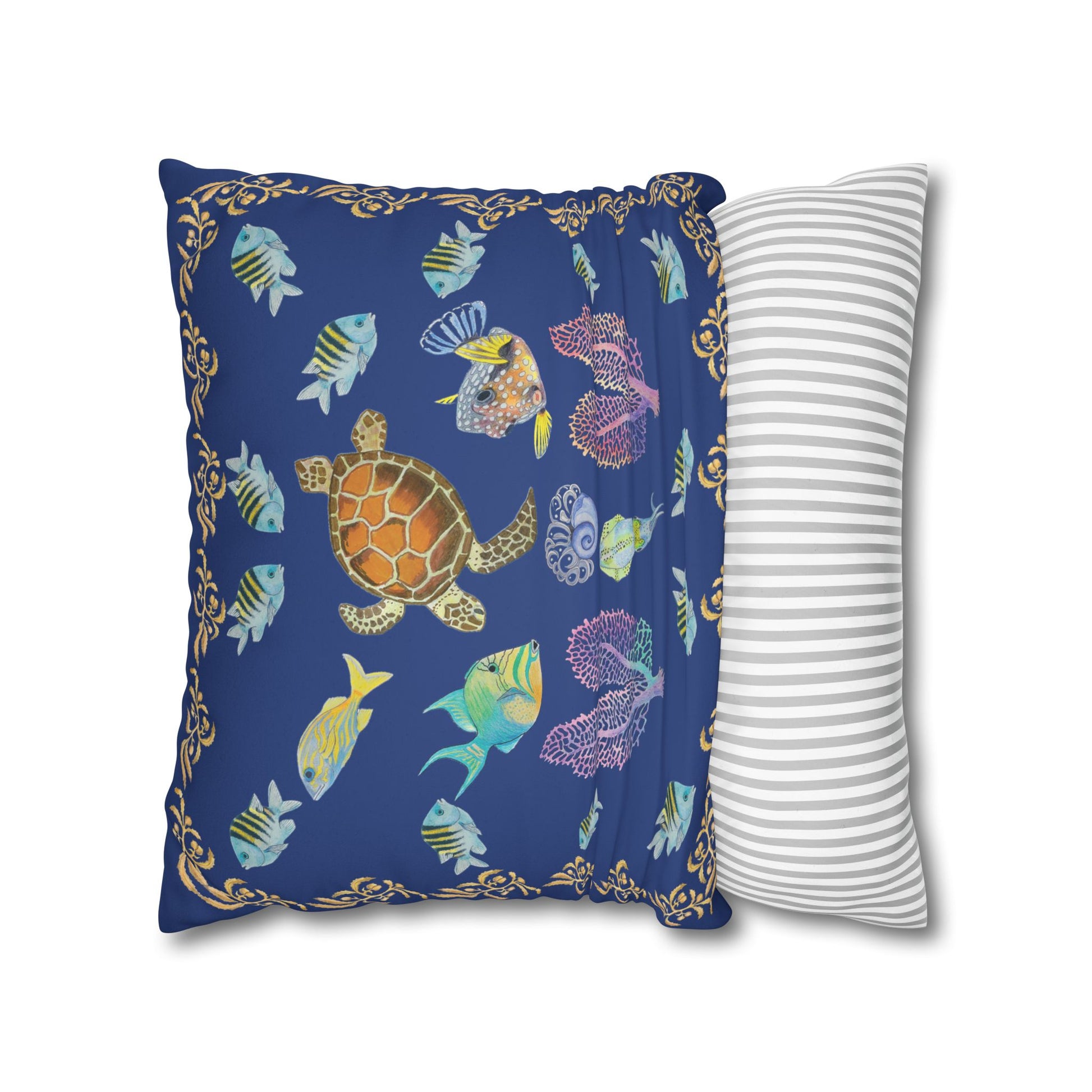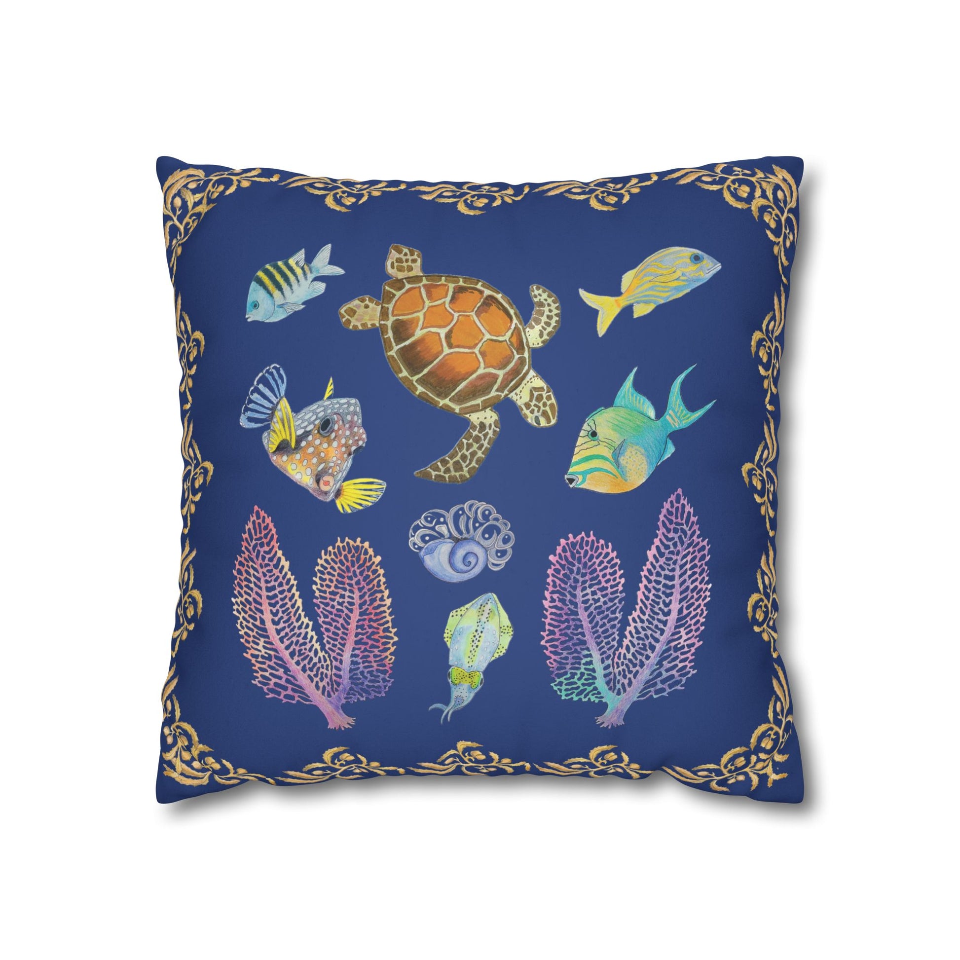 Sargasso Sea - Faux Suede Square Pillow Case - Dark Blue