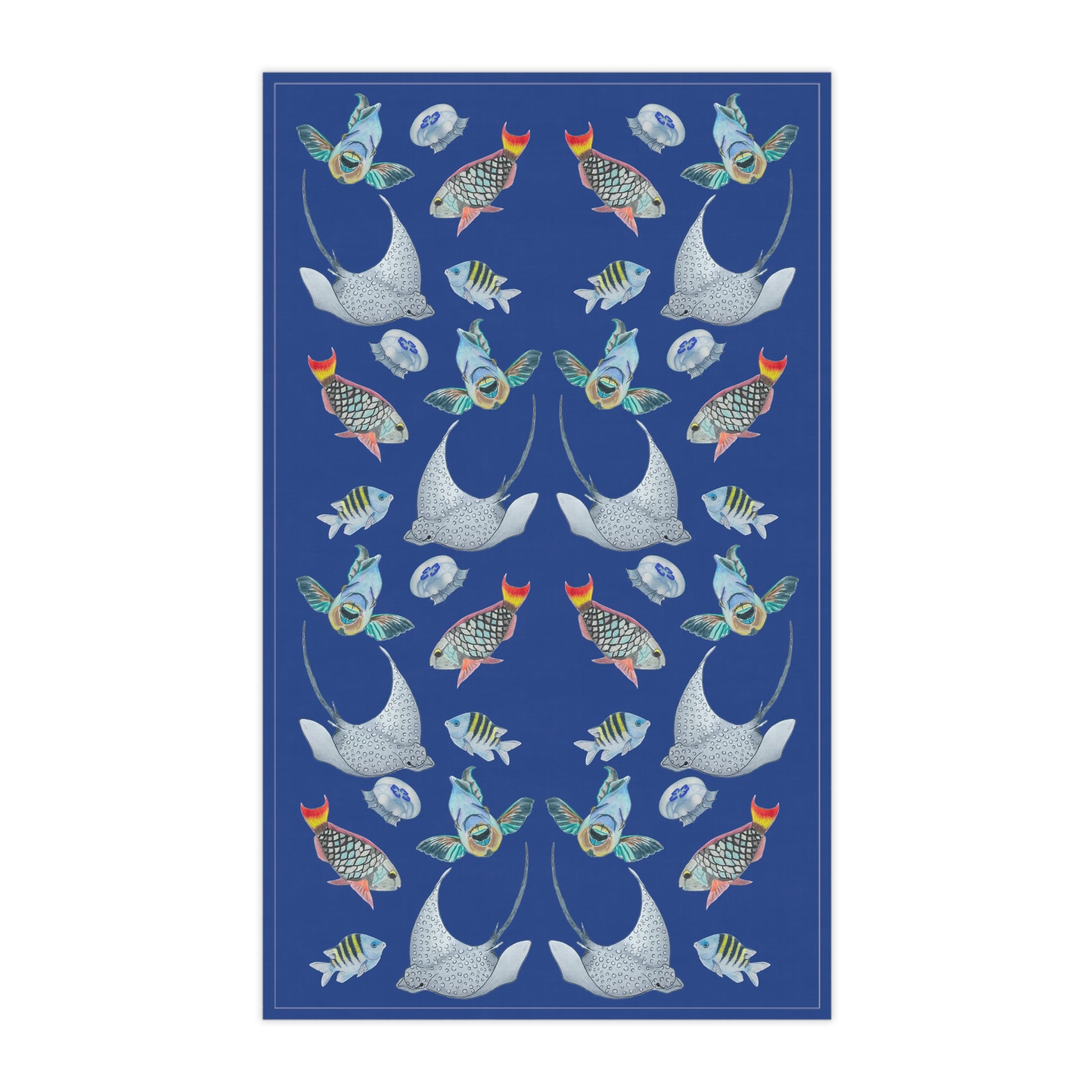 Enhance any kitchen, bathroom area or gym bag with the hand drawn illustrations of the Sargasso Sea on a hand towel.
