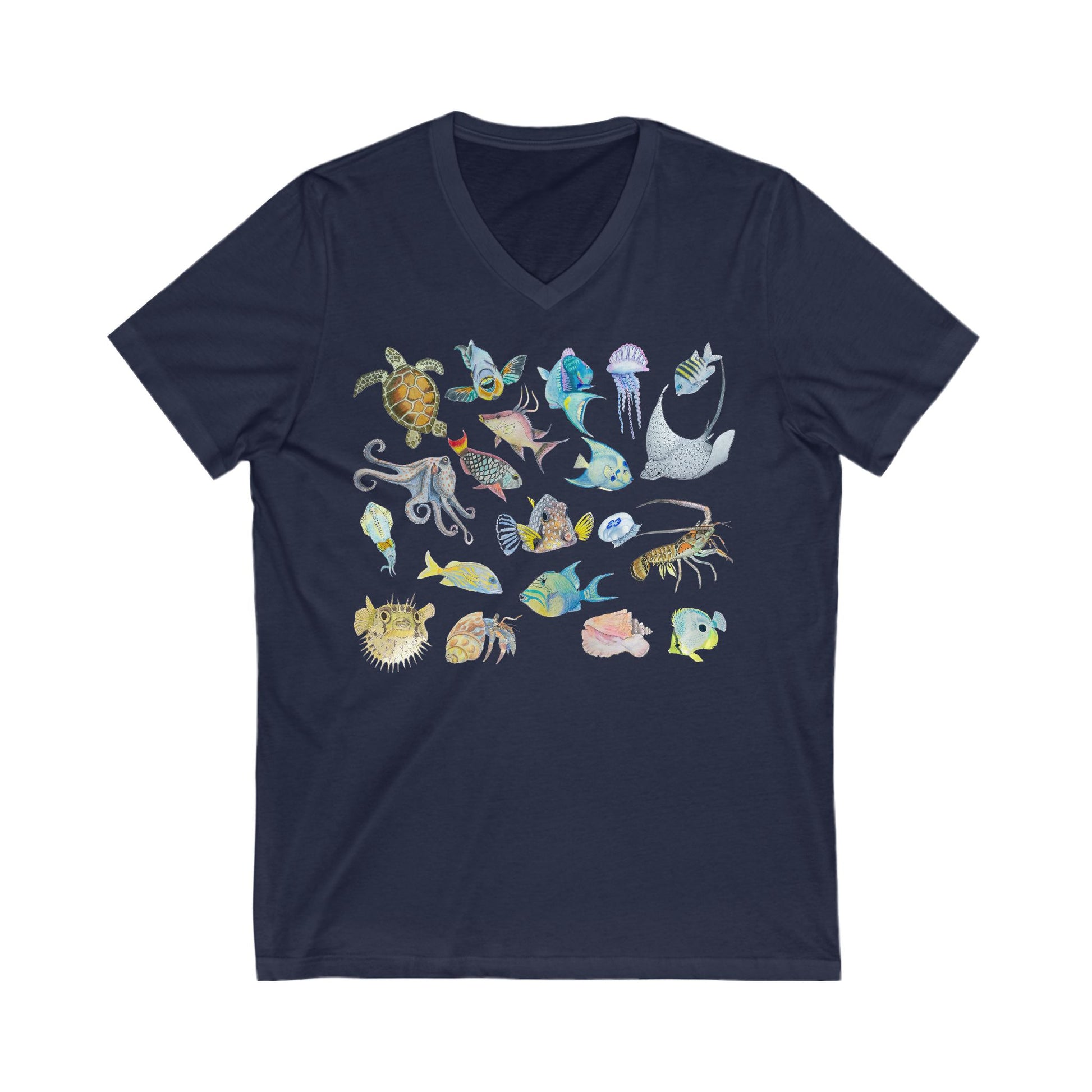 Looking good on everyone, this soft jersey tee is comfortable enough to wear all day long. High quality print featuring hand drawn illustrations, creating a pattern of the creatures of the wild Sargasso Sea!
