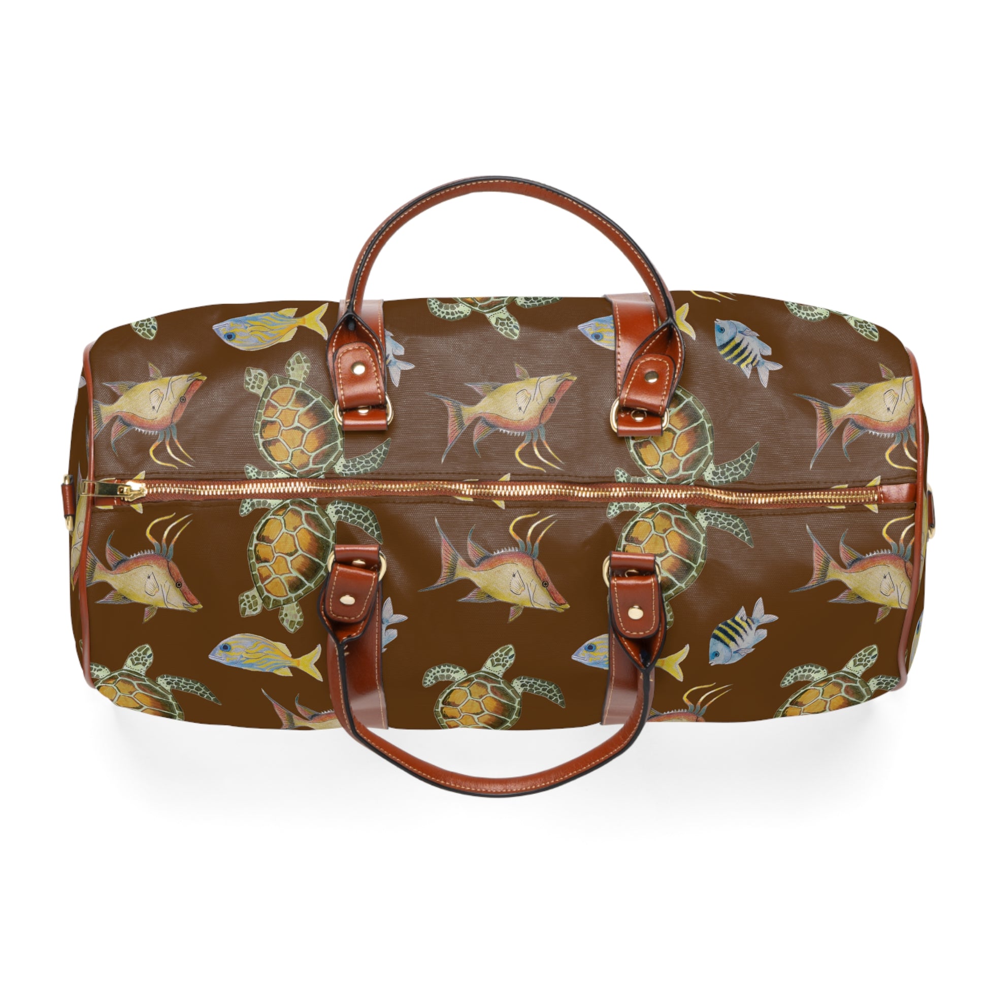 Get ready to head off on vacation (or to the beach, or to get groceries) in style with this travel bag featuring the hand drawn illustration of the Sargasso Sea. Made with high-grade waterproof nylon, it's a highly durable means of transferring your essentials wherever you go. With multiple compartments, a resilient carrying handle, and an adjustable shoulder strap, it's the perfect companion for all your adventures.